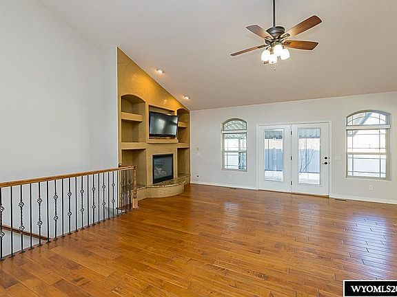 5 bedroom, 3 bathroom home, with 3 car attached garage, main floor laundry, and bonus non/conforming or large storage room in basement. Front and backyard are both landscaped with sprinkler systems. Back patio is covered and there is also an oversized storage shed. This is one owner home and was built by Don Davis in 2010. Carpet and pad were just replaced, walls have just been repainted, and the cellular blinds are new. Home enters into an open concept living, dining, and kitchen space. There is a gas fireplace in the main living room. There are 3 bedrooms and 2 bathrooms on the main level (including the primary bedroom). The primary bedroom has two closets and a large bathroom with two separate sink/vanity areas, a large jacuzzi tub, and a separate shower. The kitchen has granite countertops, gas range, and double wall ovens. There is a corner pantry and additional smaller pantry in the laundry room. The basement is fully finished with a large family room (with another gas fireplace), 2 additional bedrooms, another full bathroom, and a huge finished storage room with shelving. Seller is related to listing agent. Call or text Broker Emily Lopez with High Country Realty at 307-389-1667 to schedule your today.