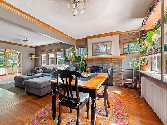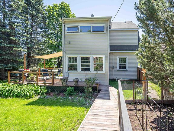 Discover the charm and character of 2719 W 8th St, a beautiful 3-bedroom, 2-bath home in the Craft District with stunning views of Lake Superior. This well-maintained residence features rich hardwood floors, traditional woodwork, and elegant ornamental molding throughout. The sunlit living room, complete with a fully functional wood-burning fireplace, leads to a sunroom/solarium that would be a perfect study or additional lounging space. Enjoy meals in the formal dining room, bathed in natural light and showcasing decorative molding and a classic fireplace. The lower level offers a workspace that is used as a bedroom, an additional 3/4 bath, laundry facilities, and ample storage, including a canning room. Upstairs, the massive master bedroom, along with two other spacious bedrooms, feature closets and some stunning lake views. This property also features an amazing outdoor sanctuary with an oversized deck, fenced-in yard, and secluded space perfect for summer entertaining. The home includes an insulated and heated 26x22 detached garage providing four additional parking stalls. Additional highlights include crystal knobs, natural wood doors, a custom-built shelf for the front window, and freshly painted interiors throughout. Situated at a dead end with a path in the alley leading to mountain trail access and the middle school, this property offers both privacy and convenience. Don’t miss out on the opportunity to live near all the best outdoor features Duluth has to offer, all within a setting of traditional elegance.