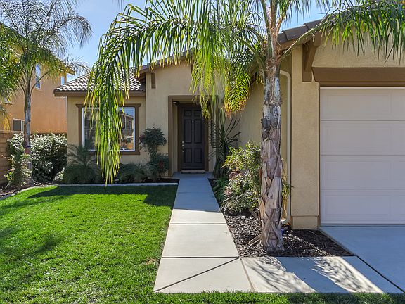 This is the move-in ready home you have been searching for! Single story houses like this are so rare and it doesn't get much better than living in the highly desirable Stoneridge Ranch, a master-planned community of Rancho Belagio. The neighborhood ambiance is fantastic! You must come see this house in person to appreciate all of the amazing qualities it has to offer! This 2008 build home has gorgeous curb appeal and so many modern conveniences you would expect from a newer contemporary home including a 3 car garage, indoor laundry room, high ceilings, an extremely popular floorplan, mirrored closets, and recessed ceiling lighting throughout. The kitchen and family room have that roomy open concept and you'll enjoy the luxurious granite counter tops, black GE appliances, built-in island with sink, the stained wood cabinetry, and custom accented two-toned interior paint. Don't forget to check out the outdoor fireplace in the back yard!