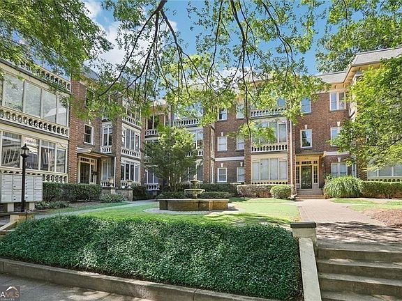 Wake up to morning coffee in your sunroom overlooking Piedmont Park. Step outside to the BeltLine, top restaurants, and Atlanta's cultural landmarks - all from a spacious historic condo in the heart of Midtown. Highly sought after and rarely available large 2-BR open floor plan on the corner with huge windows on 3 sides adding filtered sunshine in EVERY room. The best feature is the glass sunroom facing Piedmont Park that is heated and cooled for year-round enjoyment. Contemporary updates blend beautifully with 1900s charm: gorgeous original hardwood floors, and the updated kitchen features deluxe LG appliances, gas stove + marble tile counters. Every room has deep window sills that only a 100 yr old building would have. Separate dining room opens to a large living room opening to the sunroom for excellent flow when entertaining. Laundry room has a full-sized W/D and shelving for storage. Both bedrooms have custom wood blinds for each of the full windows + large custom closets. This charming stone building, built in early 1900s was totally renovated in 2002 by the Walter Davis Group and unit #21 has not been on the market since then. Well run HOA replaced the roof 5 years ago and painted all the trim and hallways. Inside, the HVAC and water heater were replaced in 2019. Your LOW $375 monthly HOA fee includes water, gas, trash, and exterior landscape and maintenance. Pet friendly building. Live in the heart of vibrant Midtown and enjoy walking to local restaurants, all the events at Piedmont Park, the Beltline, the Arts Center and Marta. This home can be sold fully furnished. What a fantastic opportunity to own a corner unit in Park View!