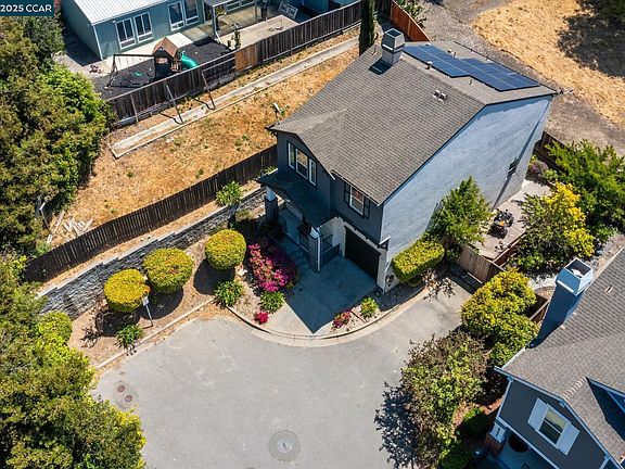 Price Reduced! Beautiful traditional corner lot home in El Sobrante perfectly situated on a spacious corner lot. This well-maintained residence blends timeless design with thoughtful, modern upgrades throughout. The home is equipped with solar panels and a 240-volt EV charger, offering both convenience and energy efficiency. Inside, you'll find a warm and inviting atmosphere, enhanced by pre-wired surround sound in the living room, garage, and one of the bedrooms—ideal for entertaining or enjoying a cozy night in. A bonus room downstairs provides the perfect for guests, a home office, or 5th bedroom. The interior features a combination of rich hardwood flooring throughout the main level, staircase, and hallway, durable tile in the entry and bathrooms, and soft carpeting in two of the bedrooms for added comfort. Dual-zone heating and air conditioning systems upstairs and downstairs ensure year-round comfort. The home also features a tankless water heater, helping you save on utility costs. The kitchen is well-equipped with a gas stove and gas hookups for the dryer, making everyday living and meal prep both efficient and enjoyable. Easy access to parks, shopping & freeways.