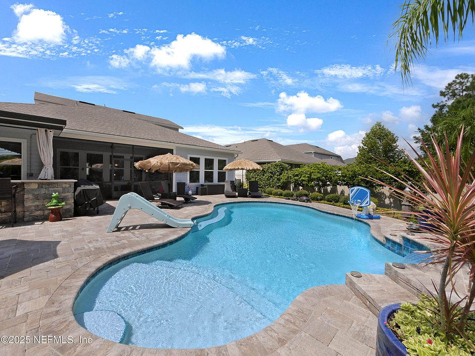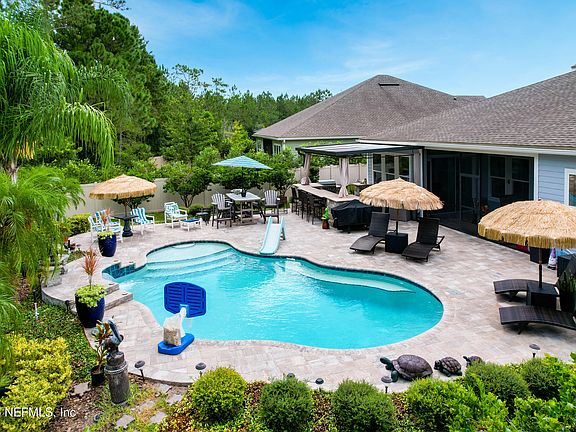 This STUNNING 4 bed, 4 bath residence epitomizes sophisticated comfort and a lifestyle of UNPARALLELED leisure. The foyer welcomes you into a meticulously designed home where a seamless flow guides you to the private, downstairs master suite. This tranquil retreat boasts an expansive, custom-outfitted closet, a true dressing room and a spacious ensuite bathroom, creating an exclusive haven of relaxation. Step outside to discover a updated BREATHTAKING $100,000 outdoor masterpiece. The expansive lanai is a private oasis, centered around a shimmering saltwater pool and spa. A stunning 1,600 sqft of meticulously laid pavers create a vast patio, perfect for hosting grand gatherings. The gourmet outdoor kitchen, a true epicurean's delight, and the professionally screened-in enclosure to elevate entertaining. CELESTINA offers a wealth of exclusive amenities, including pools, elite sports courts, a fitness center, clubhouse, and 24/7 security. *Also available for rent at $4,500 per month.*