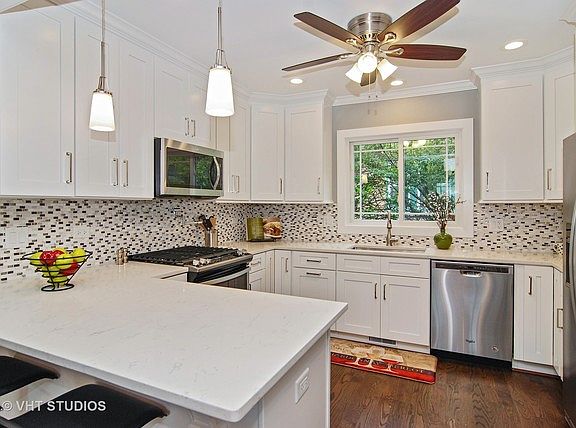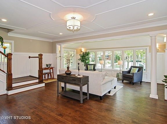 Renovated traditional 2 story in ideal location. This 4 bedroom, 3.1 bath home with a finished basement is a short walk to everything schools, town, library & train. Lots of new: Kitchen with stainless appliances, new baths, plumbing, furnace, central air, hot water tank, roof, windows, flooring too much to list. Spacious Living room with hardwood floors. Large Dining room with coffer ceiling, wainscoting, hardwood floors & French doors to side deck. Kitchen with white cabinets, backsplash, quartz counters, hardwood floors Family room (with fireplace) with sliding doors to deck. Mud room off Family room with shelving. Master bedroom with hardwood floor, master bath has double vanity & 2 walk-in closets. New carpet in other bedrooms. Finished basement with office, laundry with appliances, play room, full bath. Utility room with storage & sump pump. Brick paver patio, 2 car garage and a large lot. New sewer & water lines. Just move in and enjoy. A must see home.