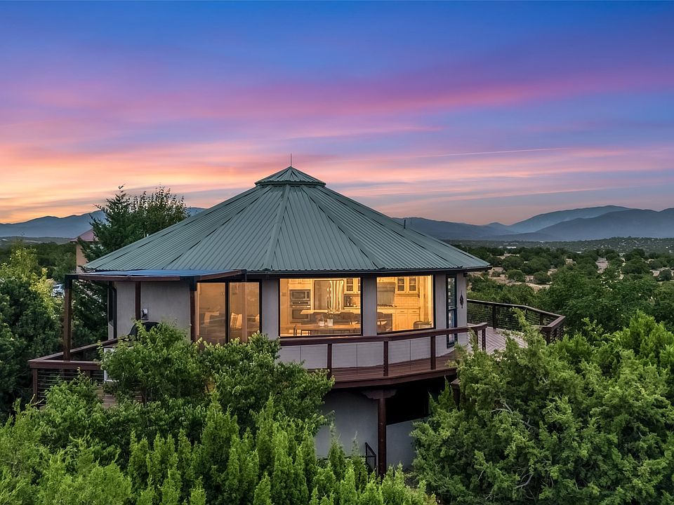 Discover the unparalleled beauty of Santa Fe at 272 Camino Tres Arroyos, a distinctive round home featuring 3 bedrooms, 2 bathrooms, and 2,482 square feet of thoughtfully designed living space. Perfectly positioned on a beautifully landscaped lot, this architecturally unique residence showcases panoramic, unobstructed views that capture the essence of Northern New Mexico’s natural beauty. Upon entry, you’re welcomed into a warm, light-filled interior that artfully combines modern updates with enduring character. The flowing, circular layout creates inviting spaces ideal for relaxing or entertaining, while recent owner improvements ensure true turnkey comfort. The property also includes a detached 320-square-foot powered studio, perfect for an artist’s retreat, home office, or guest space. Enjoy stunning sunsets from the landscaped yard or entertain guests on the private deck surrounded by Santa Fe’s iconic vistas. Situated just minutes from town yet feeling worlds away, this extraordinary home offers the best of both convenience and serenity. Don’t miss this rare opportunity to own an architecturally distinctive, move-in-ready home with unparalleled views in a coveted Santa Fe location. The home sits 1 mile down a dirt road that is maintained by the neighborhood twice a year.