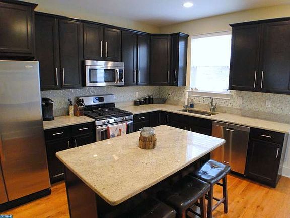 Delmar City Views is a quiet spot that is conveniently located a short distance to all the attractions of Main Street Manayunk, the train station, local city parks & shopping along 'The Ridge'. Pull into your two car driveway and step up into this stunning home. The first floor offers spacious open concept living at it's finest. From the gleaming wood flooring to the custom interior paint, custom wood work, upgraded mill worked ceiling, wainscoting, upgraded lighting and fixtures. Next is the gorgeous kitchen with granite counters, upgraded tile back splash, island seating and built-in wine refrigerator, stainless appliances, plenty of beautiful wood cabinetry, pantry closet and an exit out to your charming rear yard. The first floor also offers a convenient powder room and entrance down to the finished family/media room. This lower level is complete with a bonus powder room, upgraded carpeting and plenty of storage space in it's own separate room. The second floor boasts a sunny large hallway, upgraded carpeting, two spacious bedrooms with walk-in closets, a spacious and modern full bathroom with custom tile work and upgraded vanity & separate laundry room. The third floor is dedicated to the master suite with a spacious bedroom with gleaming wood floors, amazing bathroom, huge walk-in closet, and a door that opens out onto your private rooftop deck. You have to see the incredible Center City skyline views! You will absolutely love this space! With 7 years remaining on the tax abatement and new homes on the street selling for over $600k...now is the time to come experience all that this home has to offer.