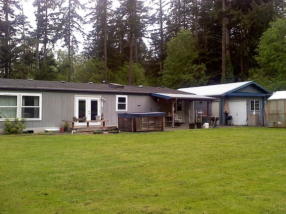 28x60 MFG home on 2.6 partially cleared acres, security system, woodstove, new roof/vinyl windows and exterior paint, hot tub, greenhouse, paved driveway, dog run, 24x30 pole building garage w/opener and attached shop, RV parking