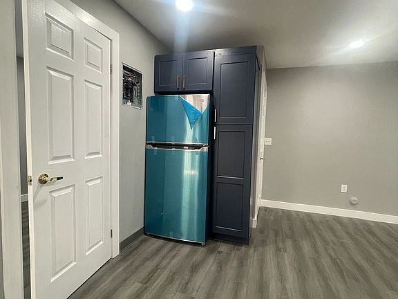 Enjoy a very spacious living room with plenty of natural light, flowing into a gorgeous open kitchen featuring a center island perfect for meals or entertaining. The kitchen is a true highlight, with bold blue and gold cabinetry and brand new stainless steel appliances: electric stove, microwave, and refrigerator. You'll be the first to use everything!
