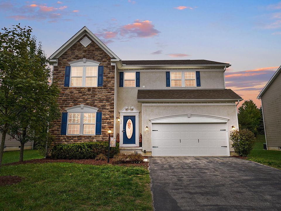 Indulge in the elegance of 272 Evergreen, a beautiful two-story residence in Georges Creek and the Pickerington Central School District! Go Tigers!! With nearly 3000 sq. ft. of living space, this stunning residence offers an open floor plan, 9' high ceilings, four generous bedrooms, abundant storage and a gourmet kitchen featuring gas stove top, expansive pantry, large center island and counter space for DAYS! Additional highlights include a first-floor office/den, eat-in kitchen, sunroom, additional bonus room, expansive basement with poured walls awaiting your personalized touches, second-floor laundry with folding counter and a spacious primary suite featuring tray ceiling, separate tub and shower, dual vanities and walk-in closet! Welcome to your new home and elevated lifestyle...