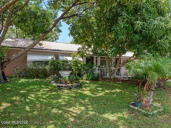 Look no further! Watch rocket launches from this affordable, built to last home with a NEWER metal roof and BRAND NEW HVAC! This home features two spacious rooms plus a flex space! The large backyard has papaya, lemon, avocado, and mango trees that provide shade as well as fruit! This quiet Port St. John neighborhood is only minutes away from Publix, the Indian River, the Space Center, beaches, and shopping! ''HOA'' is solely for pool and clubhouse maintenance and does not restrict homeowners!