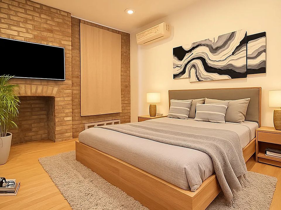 Sunlight drenched corner unitExposed brickHardwood floorsDesigner appliances