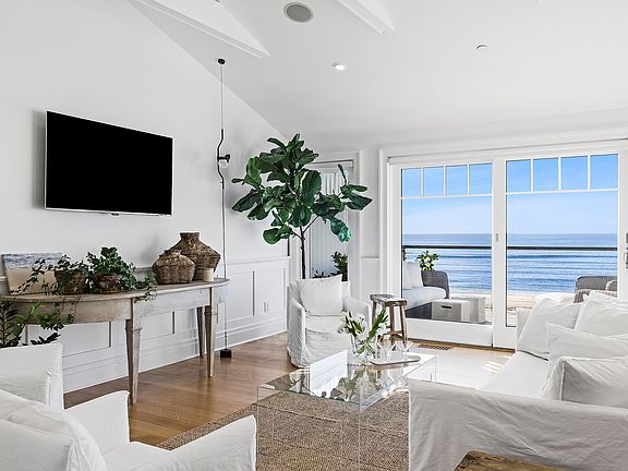 This gorgeous oceanfront unit features three bedrooms, three and one-half baths with unobstructed ocean views from nearly all rooms. The airy, light-filled living areas feature vaulted ceilings and windows flooding the space with natural light. Glass doors open wide to an oceanfront terrace showcasing dramatic panoramas of sand, sea and sky. Ideal for entertaining, the living area with a gas fireplace and comfortable seating flows seamlessly to the well-equipped kitchen providing counter seating, and high end stainless steel appliances. Downstairs the spacious primary suite has glass doors to a terrace with a hot tub and ocean views, and features a walk-in closet and luxurious bath with double vanity, frameless glass-enclosed shower with rain head and a freestanding soaking tub. A second beautifully appointed bedroom suite, has oceanside terrace access as well while the third en suite guest bedroom has sliders to a small outdoor area. This level also has a laundry/ storage room. The unit comes with private parking, and a custom beach cabana in the Hamptons most coveted location. 2024: Available August 16 - September 15 $85,000 or September $55,000