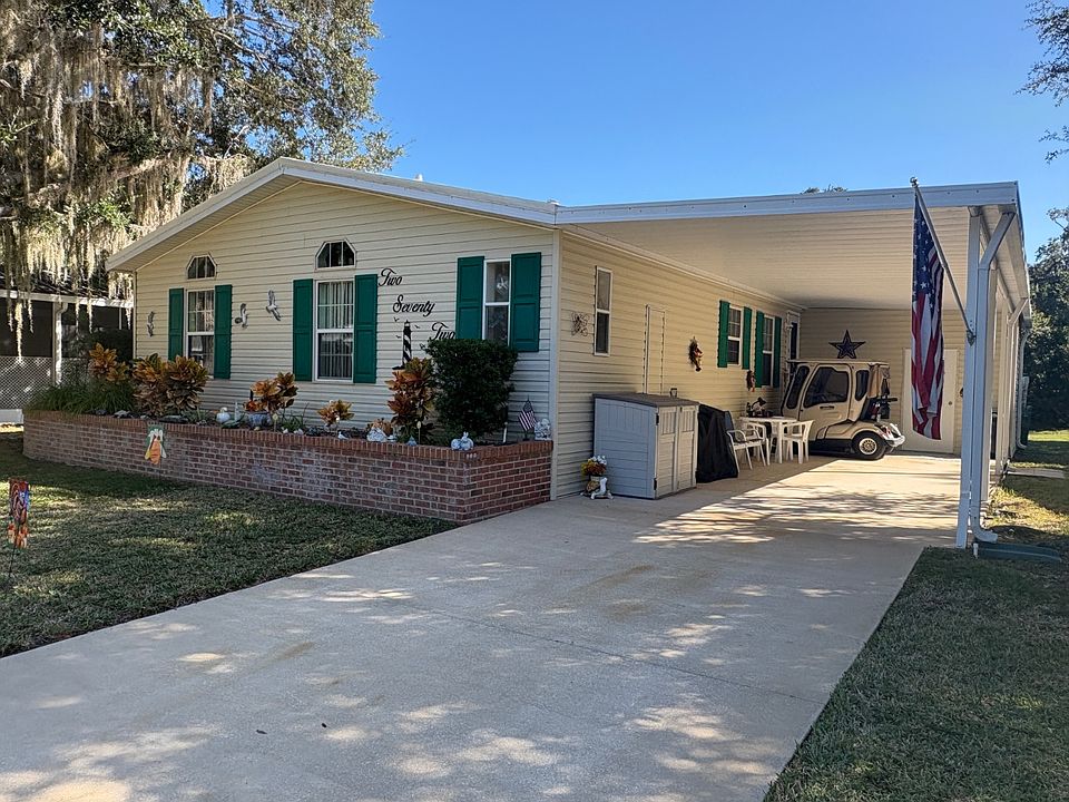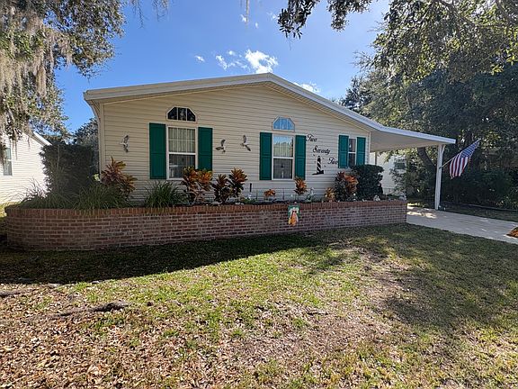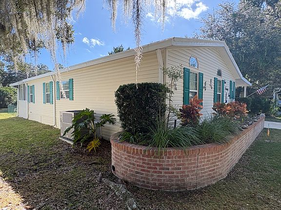 Fully furnished is included with the price of this home!!! All appliances included! Located in scenic Flagler Beach, FL, situated on a system of canal-ways on the Intracoastal Waterway, in the Daytona metro area 55+ manufactured home community with 2 swimming pools, weekly activities and a residents only boat dock, 20 minutes from the beach. This Home Features: Golf cart included, large fenced in backyard, cathedral ceilings, dry wall, Berber carpet, water softer system, reverse osmosis drinking water system, rubber roof, gutters with down spouts, covered carport raised with slab tie downs, Thermopane single hung tilt windows marble sills, attached storage shed, mower, ladders yard tools are included, enclosed Lanai with AC overlooking the water, glass slider windows, backyard is completely fenced in for pets, patio table and chairs, also all rooms are fully furnished. Dining room: extended table, 6 chairs with corner China cupboard, containing glassware. Kitchen: Fully stocked with everyday kitchen needs. Must pass a background and credit check to become a resident. Land-lease is approximately $954 a month including, trash, sewer and taxes.