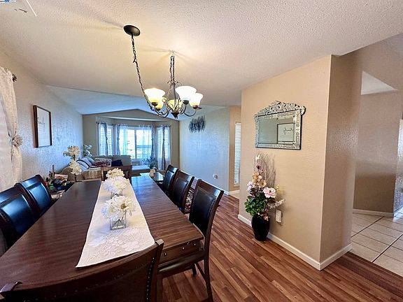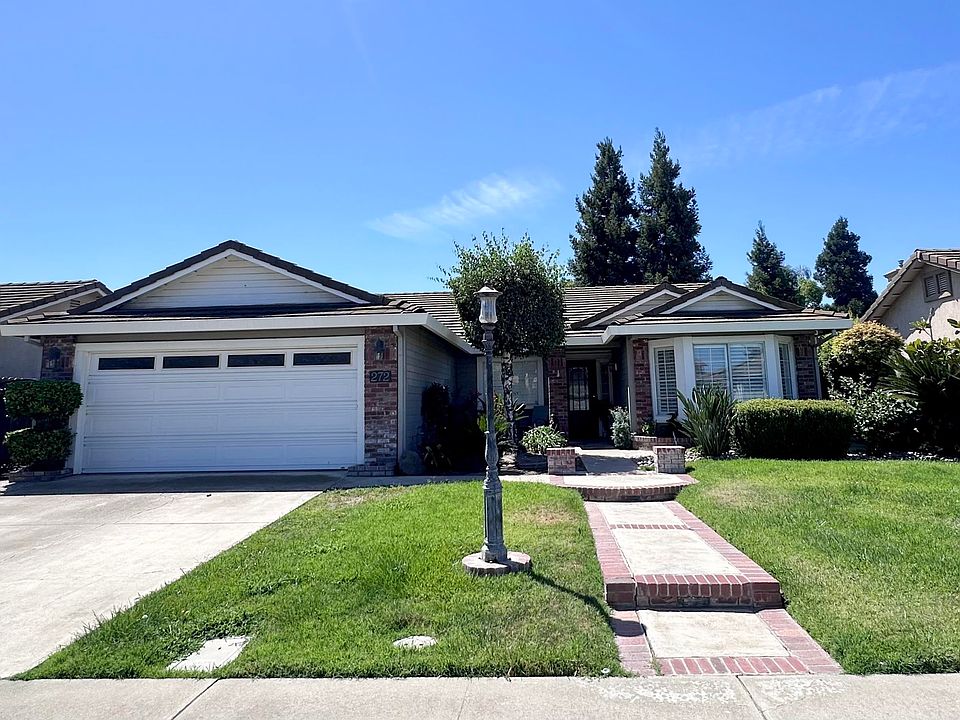 Welcome Home! Welcome to your new sanctuary—a single-level, four-bedroom, two-bathroom residence offering over 1,800 square feet of generous living space. This inviting home features two living rooms, a formal dining area, and a cozy breakfast nook, perfect for both family gatherings and intimate meals. Enjoy the warmth of two fireplaces, one elegantly situated in the living room and the other in the main suite, enhancing comfort and charm. With solar energy efficiency and a low-maintenance backyard, this home is as practical as it is beautiful. Conveniently located just minutes from the freeway and ACE train, it offers an ideal commuting experience.