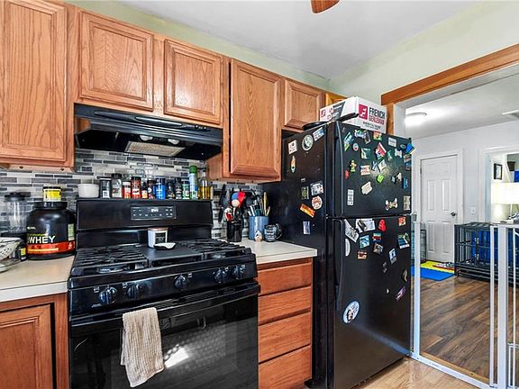 Make this charming Conventional-style single family your own! Located on a fenced corner lot in Warwick, this home offers 3 bedrooms and 1.5 baths. The open floorplan connects the kitchen, dining, and living room. The kitchen features Formica counters and vinyl flooring, while the living room includes a wood-burning fireplace, vinyl flooring, and exterior access. The dining area has an attached half bath with a laundry area with electric dryer hookup and washer hookup. The primary bedroom boasts a spacious walk-in closet and an ensuite with a double vanity. The spacious backyard has a shed for storage and a stone fire pit. Enjoy the convenience of a 2-car garage and paved driveway for ample parking! Updates include: The roof on the main house was redone in 2020, water heater was replaced in 2024, composite decking done in 2023, driveway paved in 2022. 10 Min to the airport, Oakland beach and Iggys Chowderhouse is a 2 minute drive, Buttonwoods park and Rocky Point park are both 10 minute drives.
