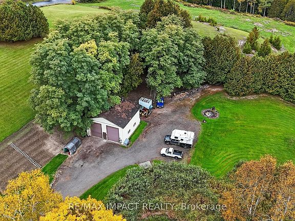Picturesque, Peaceful, Country Living just minutes from the 407. This Spacious two-story home sits on 13.67 Scenic Acres. Set Back from the road surrounded by mature trees. Owner currently rents the front 3 bedroom section of the house for $1,750/per month, tenant would like to stay, vacant possession is possible. Large primary rooms, one pellet stove, one wood stove. Have your in-laws live in the open concept 1 bedroom lower level area with separate entrance, property enjoys large open space with lean to shed where horses have resided. Workshop, metal sided, 31x30', fully insulated, heated, hydro, water. Loft on upper right side, two 10x14' overhead doors, ample parking, & access from both roads. Property has large areas of manicured lawns. Included; 2 propane furnaces 2021, two electric water heaters 2021, two air conditioner units 2021, fenced in dog run. Home roof is 2014.