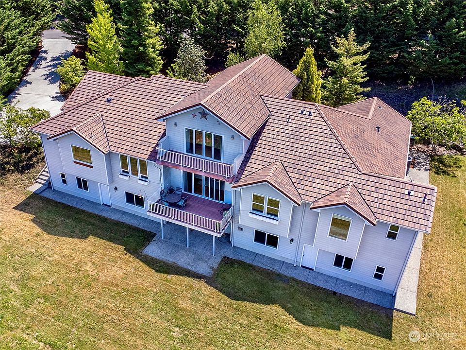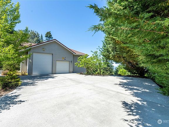Ravens Ridge in Bell Hill offers privacy, water views, & luxury Sequim-living. Main level living includes the primary bedroom suite w/jetted tub & large walk-in closet. Two additional bedrooms on main, one w/ensuite. The chef's kitchen features VIEWS, granite countertops, ample storage, & a breakfast nook. Enjoy formal living & dining on the main level or go upstairs & find a private den/office retreat w/half bath. Walk-out basement with wine room, sauna, & spacious bonus rooms. Garage w/RV bay & workspace. Two decks/balconies on the back of the home where you may enjoy views of the Strait. Ample garden space in the back of the property with fruit trees and raised garden beds.