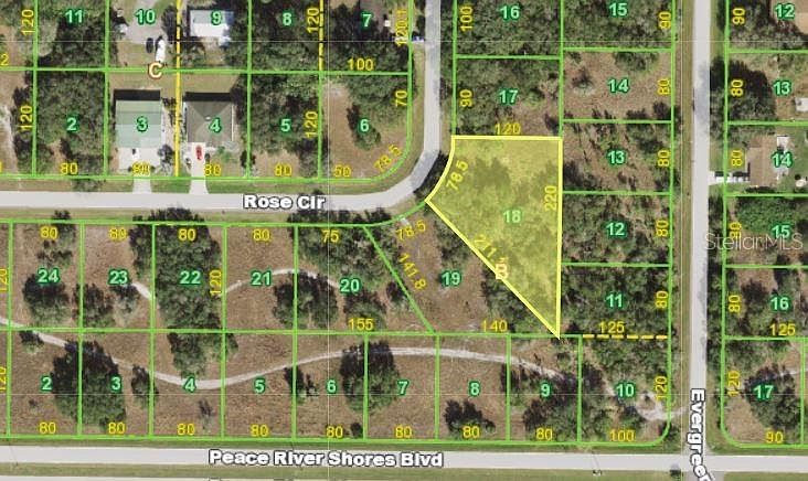 Almost a half acre on which to build your new home in the Peace River Shores area of Punta Gorda. Not far from the Walmart Distribution center, this oversized home site provides a more rural feel while still being in city limits.