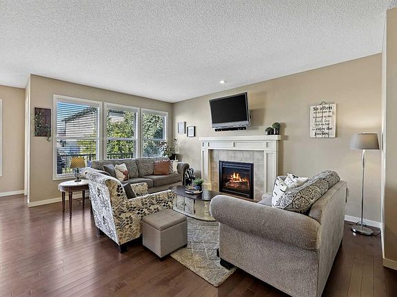 Nestled in the serene community of King Heights, this FULLY FINISHED WALK-OUT home on a quiet CUL-DE-SAC offers both charm and modern convenience. With excellent curb appeal and a large covered front porch, this home welcomes you with a spacious foyer featuring a coat closet and soaring 9' ceilings. The main floor is an entertainer's dream with an open floor plan that boasts plenty of windows, flooding the space with natural light. The baker's dream kitchen is the heart of the home, featuring a huge centre island with ample cupboard space, perfect for rolling out Christmas cookies or pizza dough. An additional raised island with an eating bar, floor-to-ceiling cabinet wall, and abundant counter space make this kitchen both beautiful and functional. Stainless steel appliances, including a newer Frigidaire stove and Bosch dishwasher, complement the space. A walk-through pantry leads to a practical boot room with a broom closet, coat closet, and direct access to the double attached garage with over an sized door. The large dining area is spacious enough to host the entire family during the holidays, with room for 10+ guests. From here, step out onto the quaint rear upper deck, complete with a gas hook-up for a fire table and/or BBQ, perfect for outdoor entertaining. The inviting living room features a modern GAS fireplace with a sleek mantel, creating a cozy atmosphere. The upper level hosts a versatile central bonus room, an office/flex space, a bright and spacious laundry room with shelving, two hallway linen closets, a 4-piece bath with its own linen closet, and two generously sized bedrooms, both with built-in closet organizers. The large primary bedroom is a true retreat, offering his AND hers ALK-IN closets, and a luxurious 5-piece ensuite with a deep soaker tub, walk-in shower, dual sinks, and plenty of counter and cupboard space. The fully finished WALK-OUT basement adds even more living space, including a fourth bedroom with a large closet, a beautifully finished 3-piece bath with a floor-to-ceiling tiled walk-in shower and IN-FLOOR HEATING, a family/theater room featuring a shiplap wall with a linear gas fireplace, custom cedar shelving, and a flex/games space. A dry bar with a beverage fridge and upgraded lighting makes this space perfect for gatherings. Step outside to the rear yard, complete with a covered lower deck and mature landscaping, creating a private oasis. The basement also offers a mechanical room with storage and ample additional storage space throughout. With a new roof in 2022, Hunter Douglas Blinds through main and upper floors, and CENTRAL A/C, this turn-key home is just steps from ponds and walking paths, within walking distance to schools and all amenities, including groceries, medical services, and restaurants. Enjoy easy highway access and a 15-minute drive to YYC Airport. Surrounded by great neighbours, this home is ready for you to move in and enjoy!