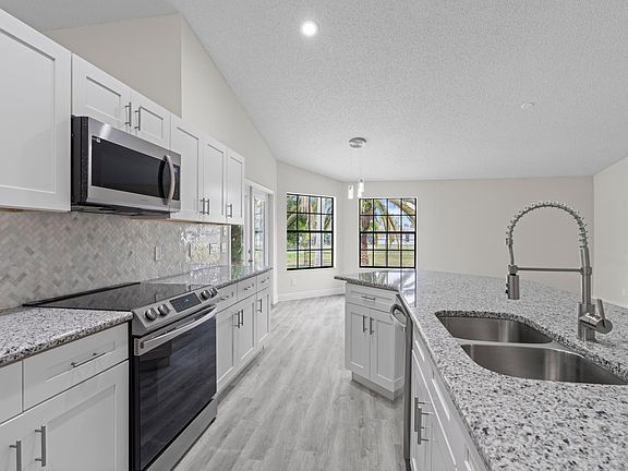 Showstopper!!! Fully renovated and move-in ready home. Situated on one of the largest lots on the street, along the canal, it truly does not get any better than this. Highlights include: luxury vinyl floors throughout, porcelain tile in the master bathroom, granite countertops in the kitchen with marble backsplash, custom doors and knobs, new A/C, new water heater, new stainless-steel appliances, new light fixtures, and new toilets. Panel shutters for all windows stored in the garage. Plenty of room for a pool. Steps away from Crosstown Parkway which is home to many different local shops and restaurants. Close proximity to both major highways (Turnpike and I-95). You don't want to miss this. Come see the attention to detail for yourself.