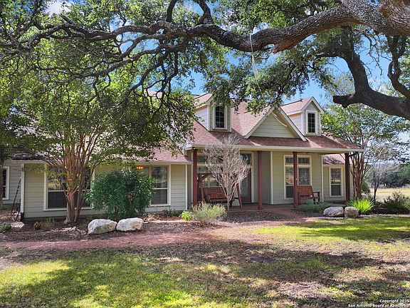 Discover your personal oasis in the coveted Willow City area and located just 15 miles north of downtown Fredericksburg with this charming 5-bedroom, 3.5-bath family home. This spacious residence has recently been repainted throughout, new carpet, new windows and a remodel of the entire kitchen. This home offers comfortable living for everyone, featuring an inviting open floor plan that showcases a large living room with stunning views of the hill country, pool and the expansive pond below. The living area boasts a beautiful rock fireplace and soaring 11-foot ceilings, seamlessly connecting to the kitchen, dining area, and breakfast bar. The gourmet kitchen is a chef's dream, equipped with granite countertops, abundant cabinet space, a sizable walk-in pantry, double ovens, an oversized range, and a massive island perfect for any gathering. The thoughtful split layout includes a luxurious primary suite, Jacuzzi tub, walk-in closet, and a private office. The owners suite offers breathtaking views of the rolling hills and direct access to the patio and pool area. On the opposite side of the home, you will find four additional bedrooms and a bathroom, providing plenty of space for family and guests. An inviting home office is conveniently located near the front entrance, overlooking the landscaped front yard. Additionally, a separate guest suite upstairs can serve as a 6th bedroom with its own private bath, making it ideal for a home gym, teen retreat, mother-in-law quarters, or rental with lock-off access from the main house. Enjoy the spacious game/media room, perfect for entertainment. The two-car garage offers ample storage, including an additional bay designated for lawn equipment or ATV. Outdoor Paradise: The meticulously landscaped yard is truly a sight to behold, shaded by majestic trees and featuring an automatic irrigation system, dog run, chicken coop and a 1000 gallon water reservoir tank. The backyard boasts ample pasture land for animals and a stocked pond ready for your next fishing adventure. Spend peaceful evenings around the large stone fire pit or cool off in the pool during hot Texas days. Enjoy your morning coffee or watch the sunset from the spacious back patio overlooking the picturesque hills. This property is perfect for entertaining or simply unwinding with family in a tranquil setting.