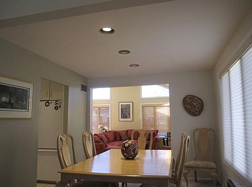 Located in Newton's Oak Hill Park neighborhood, this very bright split level home features an "L" shaped living room and dining room with wall to wall carpeting which open directly to both the kitchen and to a spacious rear family room with bleached wood flooring, vaulted ceiling with skylights and sliders to a lovely deck and well-landscaped yard. The white-tiled kitchen with all white appliances and ample countertop space has a pass-through to the family room. A few steps up is the bedroom wing with master bedroom, 2 other bedrooms and a full bath. A few steps down is the office, a second full bath with shower and a lower level den. There is a utility room with front loading washer and dryer and direct entry to a one car garage. This property has easy access to Routes 1 and 128, is on an MBTA bus line to Newton Centre, and is in the Newton South school district. No pets or smokers.