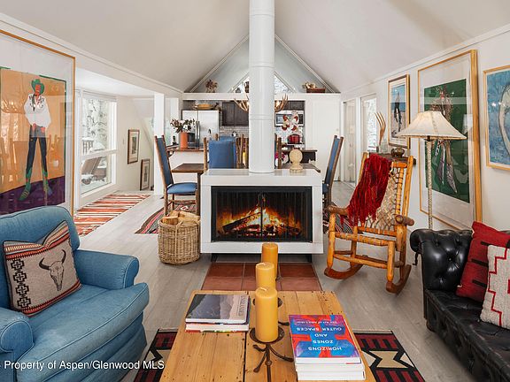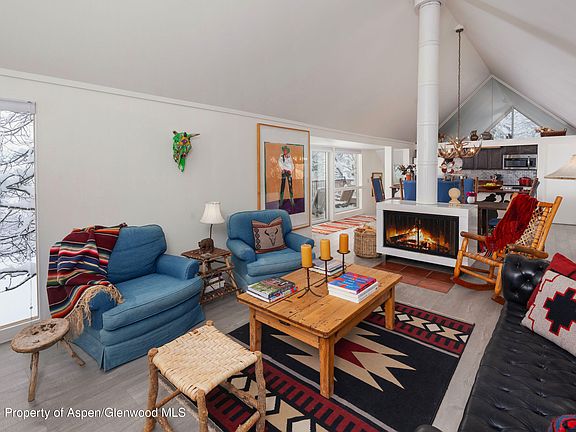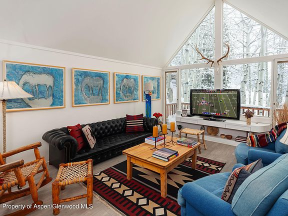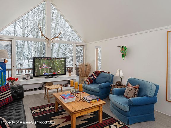 Ideal property for a young family or for use by a future developer-owner while a new home is designed for the site. This is one of Snowmass' most iconic homes built in the early days of the resort's development and nicely maintained since. Designed by noted Chicago architect, Harry Weese, who visited Aspen often in the 70's and 80's and who drew up plans for the original Given Institute, this property has only had two owners during its history, the first of whom commissioned the work. A tiny, but mighty charming house, this home has been remodeled several times during its history and is fresh in its decor. Roof has been replaced, although date uncertain. Significant architectural features include vaulted ceilings throughout the upper level and the triangular, floor-to-ceiling windows at either end of the home - in the living room and primary suite - which bring in beautiful light and forested views. There are also several circle windows or exterior ''cut-outs'' which distinguish the property from others of its era. The great room features a large woodburning fireplace and LVL flooring. An upgraded kitchen is highlighted by stainless appliances and terra cotta floors. Sleek, contemporary white baths. Filled with furniture designed and made by current owner, much of which couldl possibly be included in the sale. Decks are everywhere - one off the living room, two accessed from dining area, one at the primary bedroom which features a hot tub, and one at each guest bedroom. Beautiful views toward Aspen and the Continental Divide. Nestled in mature aspen trees and quietly set back from the street with a large front yard. The house feels like an early model for today's increasingly popular small home. Allowable FAR for the lot is 2813 sq ft + an exempt 2-car (700 sq ft) or 3-car (900 sq ft) garage; another 280 sq ft is allowed via TOSV's floor area excise tax. Closing to be mid-April 2025.