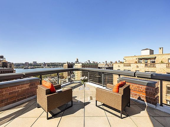 Welcome to #18B at the Straus Park Condominium. From the moment you arrive, this remarkable penthouse like home distinguishes itself with a rare and expansive wraparound terrace of nearly 1,000 square feet. Offering sweeping views of the Hudson River, the city skyline, and treetops below, it provides an extraordinary outdoor retreat that seamlessly extends the living experience. Whether for quiet mornings with a cup of coffee or evening gatherings under the open sky, this terrace is the true heart of the residence.