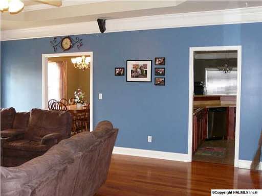Great location in the heart of Hazel Green! Beautiful full brick 3BR/2BA home has 9FT ceilings & amenities you will love! Elegant Foyer entrance, Living Rm w/trey ceilings, crown molding, corner FP & HW floors. Eat-in Kitchen boasts tile floors, backsplash, breakfast bar & pantry. Dining Rm w/tile, crown molding & large windows. Master BR has trey ceilings, crown molding, large walk-in closet, Glam BA w/tile, double vanity, jacuzzi tub & seperate shower. 5 acres w/fenced backyard & 2 patios. 03/19/14