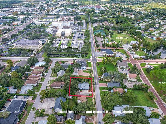 Versatile Historic Downtown Longwood Property – Live, Work, Play or Invest! Located in the heart of Historic Longwood, this rare & flexible property is ideal for residential, commercial or mixed-use living. Offering 4 spacious rooms (use as bedrooms or office spaces), half bathroom, a kitchenette, handicap ramp & parking access, this home sits on an oversized lot with endless potential. Great visibility from drive-by traffic and near corner lot intersection. Property is historically designated with the city offering additional perks! Prime walkable location to Reiter Park, Sun Rail, city events, restaurants, shops, & municipal buildings—a perfect setting for professionals, investors, or families looking for character & convenience in one of Longwood's most desirable locations. No HOA, newer roof and A/C. Schedule your showing today! * Zoned for residential or commercial use including stores, bed & breakfast, offices and more; * Large lot with potential for expansion and ample private parking around 10 spaces