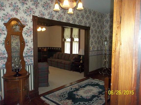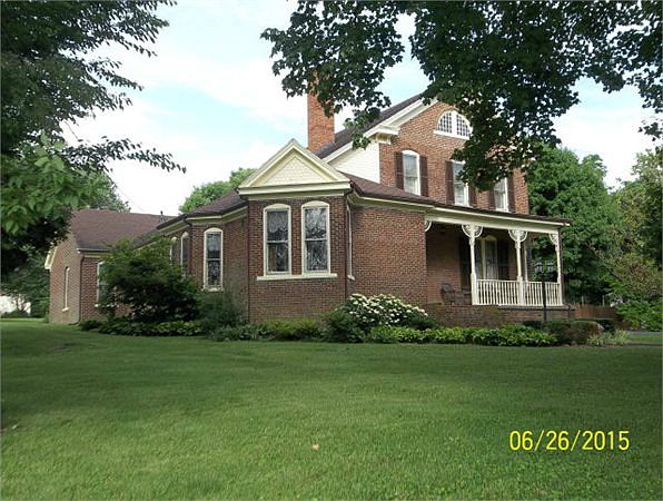 Exceptional late nineteenth century brick home. This exquisite home has 6 fireplaces with beautiful original tile work,hardwood floors,and original cherry and walnut woodwork. The master bedroom suite,sunroom,kitchen,large butler's pantry,formal dining & living rooms,den,bedroom,and 2 full baths are on the main floor. Washer/dryer hookups on main floor & 2nd floor. 2 bedrooms,full bath,and office/ study area are upstairs. The wonderful landscaping and mature shade trees compliment this stately home. The patio and pool are great for entertaining or relaxing. The double garage with 2nd floor area and 2 storage buildings {one with electric} offer lots of storage space.