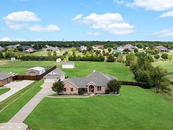 Discover serene country living just outside city limits with this stunning single-story ranch-style home, perfectly situated on a picturesque 1.5-acre lot in the highly sought-after Rockwall-Heath ISD. With no HOA or MUD restrictions, you’ll enjoy the freedom and privacy this exceptional property offers. Step inside to find gorgeous blonde luxury plank flooring and a light-filled interior that's thoughtfully designed with modern finishes and flexible living spaces to suit any lifestyle. Start your mornings or unwind in the evening in the sitting room featuring a custom built-in hutch with soft-close cabinetry and a built-in beverage fridge—ideal for relaxing with a book or entertaining guests. Make your way into the spacious living area adorned by a cozy wood-burning stone fireplace and seamless sight-lines into the kitchen and breakfast area. Utilize your culinary skills in the beautifully updated kitchen equipped with custom cabinetry, sleek CAFE appliances, dual ovens, granite counter-tops, center island and ample storage space with a wall of cabinetry in the adjacent mud room. Retreat to the secluded primary bedroom tucked in the back of the home, offering a tranquil ensuite bath with dual sinks, granite counter-tops, soaking tub, separate shower and three tier hanging walk-in closet. Three additional bedrooms each include walk-in closets and share access to a well appointed full bath. Step outside to your backyard oasis, where a sparkling swimming pool with a tranquil water feature awaits. A wrought-iron safety fence adds peace of mind for families and pets. For hobbyists, car enthusiasts, or those needing extra storage, this property includes a 25x36 workshop with a half bath, a 25x18 RV or boat storage building, and ample parking for up to six vehicles. Enjoy the perfect blend of space, comfort, and convenience—all in an unbeatable location with top-rated schools and easy access to both Rockwall and Heath. This one-of-a-kind home truly has it all.