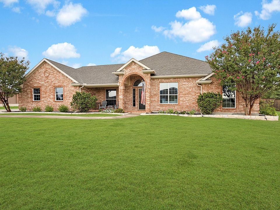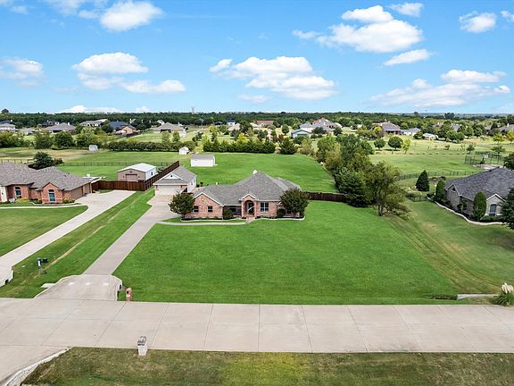 Discover serene country living just outside city limits with this stunning single-story ranch-style home, perfectly situated on a picturesque 1.5-acre lot in the highly sought-after Rockwall-Heath ISD. With no HOA or MUD restrictions, you’ll enjoy the freedom and privacy this exceptional property offers. Step inside to find gorgeous blonde luxury plank flooring and a light-filled interior that's thoughtfully designed with modern finishes and flexible living spaces to suit any lifestyle. Start your mornings or unwind in the evening in the sitting room featuring a custom built-in hutch with soft-close cabinetry and a built-in beverage fridge—ideal for relaxing with a book or entertaining guests. Make your way into the spacious living area adorned by a cozy wood-burning stone fireplace and seamless sight-lines into the kitchen and breakfast area. Utilize your culinary skills in the beautifully updated kitchen equipped with custom cabinetry, sleek CAFE appliances, dual ovens, granite counter-tops, center island and ample storage space with a wall of cabinetry in the adjacent mud room. Retreat to the secluded primary bedroom tucked in the back of the home, offering a tranquil ensuite bath with dual sinks, granite counter-tops, soaking tub, separate shower and three tier hanging walk-in closet. Three additional bedrooms each include walk-in closets and share access to a well appointed full bath. Step outside to your backyard oasis, where a sparkling swimming pool with a tranquil water feature awaits. A wrought-iron safety fence adds peace of mind for families and pets. For hobbyists, car enthusiasts, or those needing extra storage, this property includes a 23x15 workshop with a half bath, a 25x18 RV or boat storage building, and ample parking for up to six vehicles. Enjoy the perfect blend of space, comfort, and convenience—all in an unbeatable location with top-rated schools and easy access to both Rockwall and Heath. This one-of-a-kind home truly has it all.