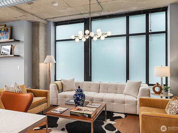 Step into the vibrant, artistic energy of Seattle at the iconic Mosler Lofts. This recently updated corner-unit home blends industrial character with modern luxury. Soaring floor-to-ceiling windows, sleek finishes, and the most iconic view in the city: the Space Needle, framed perfectly from your living room, dining area, and private balcony. Inside, you’ll find a modern open floor plan with thoughtful updates, including a new kitchen island, upgraded lighting, and custom built-in closets and vanities. The stylish kitchen is ready for entertaining, while central heat and A/C keep you comfortable year-round. Building amenities elevate your lifestyle with a lush rooftop garden, gas fire pit, and BBQ, offering panoramic mountain & water views.