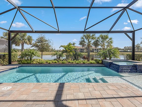 Searching for a home where serene lake views embrace your daily life? This impeccably maintained three-bedroom, three-full-bath lakeside residence in Amaranda in the distinguished community of Fiddler's Creek offers a harmonious merging of comfort and splendor! From its vibrant landscaping and colorful blooms to its thoughtfully designed interior, every detail of this abode is crafted for elegance and ease. Step inside to discover an open-concept layout bathed in natural light, courtesy of abundant impact windows, sliders and doors. Coffered ceilings with crown molding, plantation shutters and wood-look ceramic floors add warmth and sophistication, while contemporary fans provide a modern touch. This incredible home offers plentiful natural light and is like a new home without the wait or stress of building. Entertain effortlessly in the living and dining areas, while the open kitchen creates an ideal focal point with its sleek white cabinetry, gleaming quartz countertops, natural gas cooktop, wall oven, and premium stainless appliances. The pendant-lit island and generous pantry make it as functional as it is stylish. Your primary suite is an oasis, featuring a tray ceiling, walk-in closet, and spa-like en suite with a dual vanity and multi-head shower for ultimate relaxation. French doors lead to study, offering a versatile space for work or leisure. The expansive screened-in lanai is another area where this dwelling shines. Pocketing corner doors create a seamless transition between indoor and outdoor living, leading to a pristine saltwater pool and spa with breathtaking lake views. The patio's outdoor kitchen with its stylish tile backsplash and built-in grill is ideal for weekend get-togethers, while electric shutters provide convenience and protection. Additional highlights include an attached two-car garage and a laundry room with built-in shelving and a sink. Venture beyond your tranquil street to uncover the many perks of residing in Fiddler's Creek. This exclusive, gated community features miles of scenic promenades for biking and jogging, profuse greenery and world-class amenities. Stay active with a state-of-the-art fitness center, professional trainers and group classes, or unwind in the hot tub, sauna and steam room. Tennis and pickleball lovers will love the year-round programs, while golf enthusiasts can treat themselves to the new clubhouse and newly renovated championship course with immediate optional membership. An extensive social calendar fosters a sense of camaraderie. Ideally just minutes from downtown Naples and Marco Island, this home offers easy access to stunning beaches, excellent restaurants, boutique shops, yacht clubs and endless recreational sports. Memberships in golf, beach and marina clubs are optional and sure to enhance your experience. Grab this exceptional opportunity today!