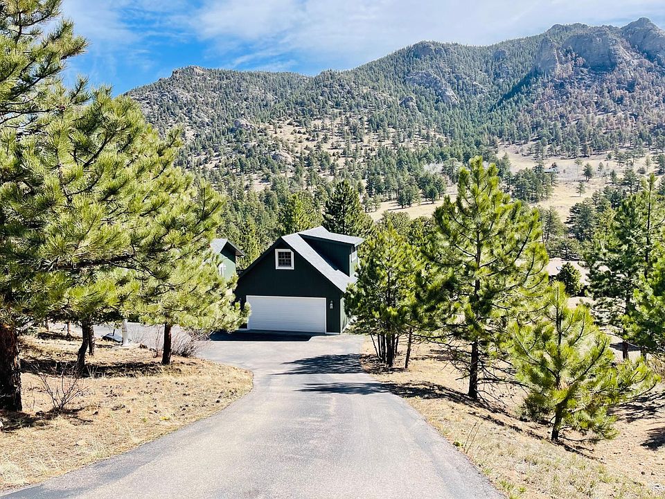 Newly renovated home for rent in the peaceful Carriage Hills neighborhood of Estes Park. Four Bedrooms, two and a half bathrooms, 2,400 sq. ft. home with additional 400 sq. ft. loft above the garage- would make a great workspace. Many new features in the home including new laminate flooring, pine ceilings, new gas fireplace and completely new bathroom on the lower level. Oversized two-car garage and large deck. The house is on a .5 acre lot filled with pine and spruce trees and has beautiful mountain views that extend all the way down in to Estes valley.