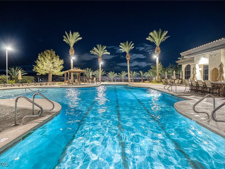 Location, Location, Location. Right across from The Clubhouse! Literally cross the street to Club at Madeira Canyon Clubhouse, Pool & Spa, Tennis, Basketball & Fitness Gym. All included in HOA:) Guard-Gated Community! Welcome to this Newly Painted and Move-In-Ready 1-Story. 3289 SF, 4 Bed, 3 Bath, 3 Car, 18. Acres. SS Kitchen w/ Double Ovens, Granite Counters & Bar Seating. Large Walk-in Pantry. Great Room w/ Stone-Surround Fireplace. Built-In Desk/Office, Oversized Primary Suite w/ Spa Bath, Separate Tub, Shower, Dual Vanities, Make-up Counter & Walk-in Closet. All Bedrooms are Generous w/Walk-in-Closets. Large Picture Windows= Lots of Natural Light. Spacious Laundry Rm w/ Cabinetry& Sink, Washer & Dryer Included. Tile Throughout-No Carpet. Private Outdoor Grounds, Tankless Water Heater. . Unbeatable Location- Mins to Dining, Shops, Zoned for Top-Rated Schools. And, Nevada is a State WITHOUT Individual, Corporate, Estate or Inheritance Taxes offering significant savings for Residents.