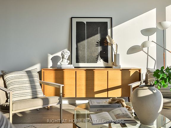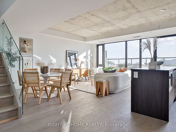 Great space awaits - the largest 2-storey home at Junction House! This is a true townhome in the sky, offering an expansive 1,366 square foot floorplan and a private 150 square foot terrace with sweeping views of the city and lake. Complete with BBQ connection and water service, the terrace is ideal for effortless outdoor entertaining. Inside, generous room sizes continue with an extra wide and open main level is anchored by a Scavolini kitchen with an oversized island and gas cooktop, abundant storage and premium appliances, flowing into a large living and dining room thats bathed in natural light. Perfectly designed for gatherings, this level balances elegance with livability, and includes a discrete powder room. Upstairs, two exceptionally spacious bedrooms await, including a bright primary suite with a walk-through closet space and a lavish ensuite featuring dual vanities and a walk-in shower. The second bedroom also features bright south windows and access to the home's main bathroom. Underground parking and storage locker included.