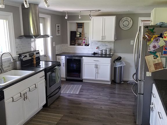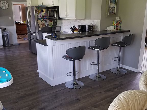 Fresh paint through out. Kitchen remodeled including engineered hardwood floors, backsplash, countertops, mini bar, breakfast island. bath completely remodeled including new vanity and shower. fireplace insert installed in 2015 with concrete Hearth. Newer furnace in 2014 with central air. New Hot water heater in 2013. Garage has a furnace it as well. New garage door opener this year.