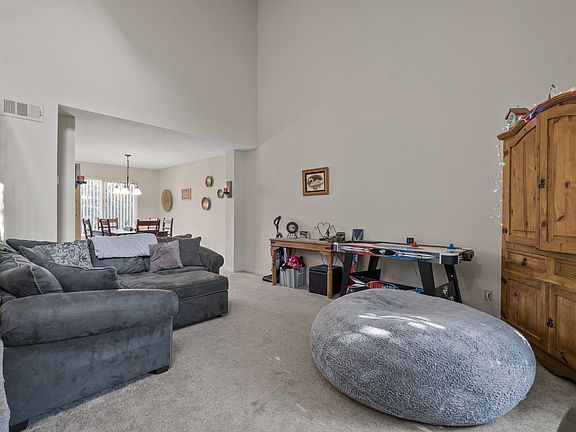 Poised at the end of a cul-de-sac in the desirable city of Simi Valley, a charming two-story home awaits! From the front yard detailed by a large prominent tree shading the double door entry of this 2,162-sqft abode, be welcomed by a pleasant floorplan accentuated by tall ceilings, a mix of plush carpet flooring and glossy tile, plus well-sized windows that awash each room in illuminating sunshine. The casual living room opens into the dining room and provides a cohesive flow when entertaining. Past a swing door leading into the kitchen, delight in glossy stone countertops atop rich honey tone wood cabinetry, built-in stainless-steel appliances, and even space for a cute breakfast area. A mini wet bar resides at the corner of a large family room featuring a large fireplace framed by beautiful stone and sliding door access out to the backyard. Ascend the carpet lined staircase to find generously sized bedrooms that each include built-in closet storage. The primary bedroom enjoys a high-pitched roof and the exclusive comfort of an attached bathroom offering a large dual sink vanity, walk-in shower, and soaking tub. Included with this home is a newer AC system installed in 2019, a convenient guest powder room, plus direct access to the attached 2-car garage. Venture outside to the backyard where this blank canvas yard is waiting to be transformed into a private oasis to relax all stresses away. Residing down the street from Simi Hills Neighborhood Park, nearby Simi Valley high School, local establishments, popular dining, shopping centers, easy freeway access and more! A true Simi Valley delight!