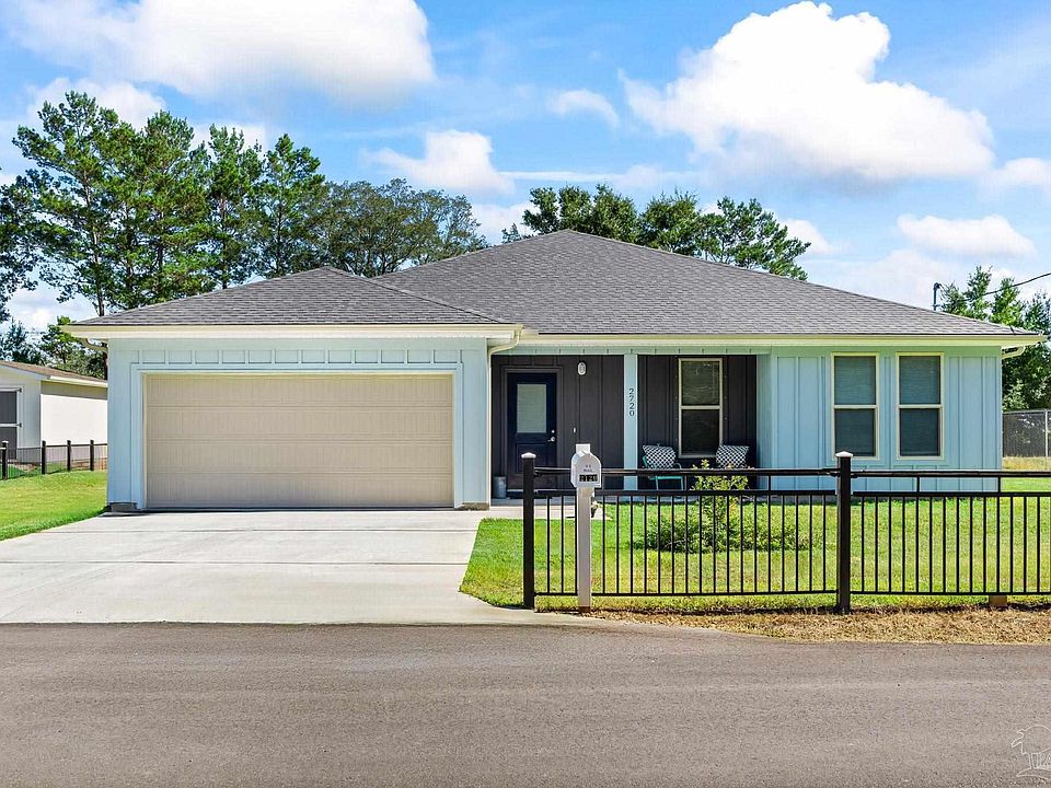 Built in 2025, this beautifully designed 4-bedroom, 2-bath home offers modern luxury and energy efficiency in one of Florida's most desirable coastal communities. The open-concept layout showcases designer-stained concrete flooring, a high-end finish that delivers a sleek, polished look with exceptional durability. Paired with granite countertops, the interiors reflect a contemporary style that is both elegant and low maintenance. The gourmet-inspired kitchen flows seamlessly into spacious living areas, perfect for entertaining, while abundant natural light enhances the inviting atmosphere. This residence is equipped with a high-efficiency GREE Inverter Split Type Air Conditioner Heat Pump, ensuring year-round comfort and reduced utility costs. Durable Hardi-Plank siding adds timeless curb appeal, and the fully insulated garage with insulated garage door provides both functionality and energy savings. Peace of mind comes standard with a 10-year structural warranty and a 1-year home warranty, making this property truly move-in ready. The location offers convenient access to pristine Gulf beaches, the bay, scenic parks, shopping, dining, and world-class fishing. Golf enthusiasts will appreciate nearby courses offering championship-level play and beautiful coastal views. Military bases are also within close proximity, adding to the convenience of this prime location. Whether seeking a brand-new build with modern finishes or relocating to enjoy Florida's coastal lifestyle, this home delivers the perfect combination of luxury, efficiency, and location. With its warranties, stylish design, and access to beaches, golf, and everyday amenities, this property represents a rare opportunity to own a one-of-a-kind treasure in Navarre.
