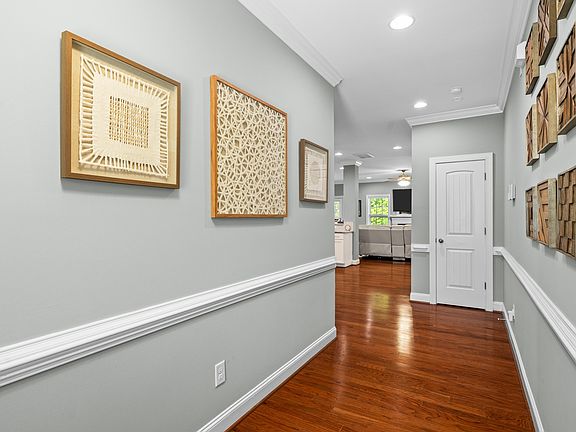 Spacious town home in Bella Casa with 2 car garage, gas log fireplace, gourmet kitchen w/granite countertops and huge working area, prep area, SS appliances ,natural gas range, recessed lighting, counter top lighting, tile floors in all bathrooms and laundry, hardwoods throughout the first floor, gas cooking, crown first floor, 5 1/4 baseboards, separate soaking tub and tiled shower in master. Dual vanities in both baths. Unfinished 3rd floor for additional storage and /or room to grow.. Home backs to a wooded area that makes the home very private.