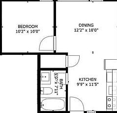 Steele Apartments 1BR/1BA, 400 sq ft, available now. Third-floor walk-up (stairs only).