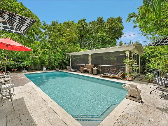 Artful classic elegance in this 1930’s charmer with gorgeous, updated interiors complemented by a stunning patio complete with new large heated saltwater pool and fully screened-in cabana. No expenses were spared in the renovation of this beautiful home including a brand-new barrel tile roof, new heated pool, restored vaulted ceilings, new impact French doors leading to patio, new electric panel, & renovated kitchen w/ new floors, counters & backsplash. Enjoy original Miami-Dade county pine wood floors, elegant fireplace, gorgeous vaulted ceilings, 1-car garage. This home offers a large open living area plus the huge screened-in cabana ideal for hosting and entertaining. Live steps away from Coral Gables, Coconut Grove, Miracle Mile & Coral Way, and not located in a flood zone.