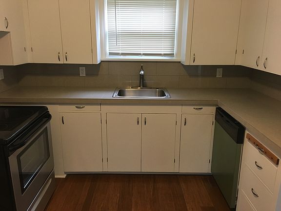 We are offering for rent ONE renovated 1 bedroom/1 bathroom duplex home at The Woods Apartments. The apartment has completed a total renovation. We are now accepting applications for this home. None of the units at this property are disabled accessible units. " Our website also has photos, a walkthrough video and more information. Rent is $1,399/month, plus each tenant pays $40/month as a water/sewer/utility supplement. Tenants are responsible for their own electric bills (lighting and heating) and any phone or Internet desired. Landlord pays for trash/recycling and water/sewer. We will require a strong rental history, good credit, and a $1,399 refundable security deposit. No last month's rent deposit is required. One or two spayed/neutered cats or dogs are acceptable with pet rent of $35/pet/month (breed restrictions apply). Maximum 2 animals total. No additional pet deposit is required. This is a smoke-free building, no smoking in any of the units, or within 30 feet of the building. This duplex apartment also features the following amenities: --Hardwood flooring in the kitchen and living areas and carpet in the bedroom. --Refinished cabinets with stainless steel pulls. --Open-concept kitchens with ceramic counter-tops and back-splashes. --Modern kitchen appliances including smooth-top range, fridge, full-sized dishwasher, and garbage disposal. --In-unit laundry with modern stackable washers and dryers. --High-efficiency zonal electric heating system and new double-pane windows. --Newer bathroom tile, mirror, tub, lighting and fixtures in the bathroom. --Fresh paint and blinds throughout. --One reserved off-street parking space right in front of the home. --Private balcony overlooking shared green space. The Woods is located at 2720-2740 SW Spring Garden St., a few minutes from the center of Multnomah Village, with all its shops, bars, and restaurants. The bus stop is a 3 minute walk away. The complex is 8 minutes from downtown, near Spring Garden Park, and Multnomah Arts Center, and is very convenient to the Safeway on Barbur Blvd. Easy access to I-5 and Barbur Blvd.