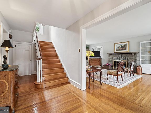 Homes like this come along once a generation! They are loved for a lifetime and only exchange hands on rare occasion. Welcome to this elegant center hall 3 story colonial in the Merion Golf neighborhood of Haverford Twp. Sitting up above the street facing W. Clearfield, a wide and deep lot (95' x 150') adds to the wonderful curb appeal with a 1/3 acre of manicured yard. Walking up, the teal shutters and pink door accent the light stucco exterior, with three curved roof dormers and a new architectural shingle roof with copper flashing (2024). To your left you'll notice the private double wide driveway (side by side off-street parking) that leads to the 2 car detached garage w/rear storage shed. Entering the home, a wide and welcoming center hall with hardwood floors shines and natural light comes through a stunning original window at the top of the wide staircase. To the right of the center hall you'll find a large living room with built-in book shelves, as well as, a stone fireplace with gas insert. Beyond the living room is the enclosed porch, providing additional living space as a den or home office, and includes a separate entrance, half bath with marble flooring and large storage closets. To the left of the center hall, you'll find a formal dining room lined with tall windows with entrances to a cozy back den/office space, as well as, the eat-in-kitchen. The kitchen offers great space with white cabinetry, ceramic tile floor, gas cooking, pantry closet, window overlooking the back patio/yard and 2 exits, one to the patio and one to a mud room that heads towards the garage and side yard. Out back you'll find a wonderfully large fenced yard with flagstone patio & awning, custom lighting, and an 8 person hot tub! Heading to the second floor, you'll find a large main bedroom with multiple closets (including a cedar closet) and two doors leading out to the front porch roof. Further, you'll find a full hall bath with 2 sinks, tub/shower and granite flooring, as well as, 2 additional bedrooms. Stairs off the main hall lead up to the 3rd floor that presents 2 more bright bedrooms and a hall bath with stall shower. Off the back of the first floor hall, you'll find stairs down to a full unfinished basement, that provides great space and potential to be finished. The space has been well maintained with french drains and sump pumps, and includes plenty of storage space, a laundry area and steps up to Bilco doors that open towards the driveway. Other great features of the home include a Kohler whole house generator, all 3 flat roofs removed and replaced in 2021, new main roof (2024), new fencing and 2 gates (2024), gas boiler and hot water, and much more. Located in a great sidewalk neighborhood close to parks (Paddock and Merwood), schools, shopping and restaurants in Oakmont, public transit (bus and high speed trolley), walking trails (Pennsy Trail), 1/4 mile to world-renowned Merion Golf Club, and just a short drive to the Haverford Reserve. If you love the character and are looking for a place to call home for your next generation, don't miss this opportunity.