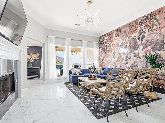 You won't forget you're in Texas with this rodeo-themed wallpaper! Full of character and personality, this living room welcomes you in with open arms! Grab a seat on the couch, turn on your favorite TV show, and unwind after a long day exploring the many nearby attractions.
