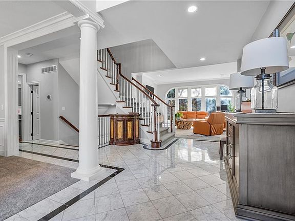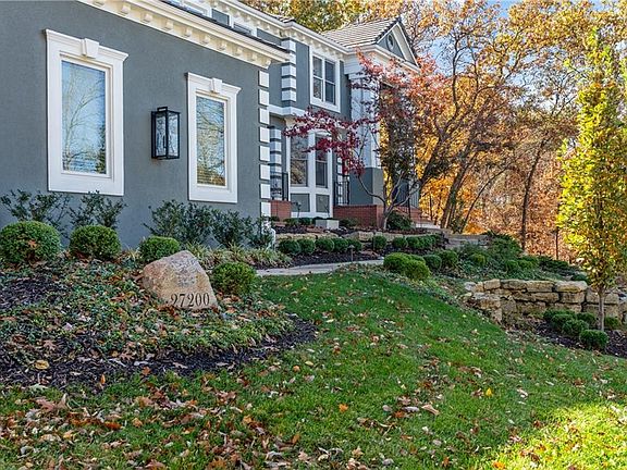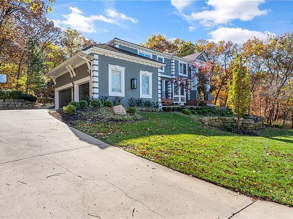 Welcome to your private sanctuary in western Olathe, nestled on a nearly 1 acre lot within the prestigious Cedar Creek community. This exquisite home, positioned on a spacious, wooded lot at the end of a tranquil cul-de-sac, offers a luxurious lifestyle with access to beautiful lake views and the option to join the exclusive Shadow Glen golf course. This custom-built, two-story residence spans over 5,800 square feet of refined living space, designed with versatility in mind. Step into a grand foyer leading to a flexible main floor that includes a dedicated office, ideal for remote work. The 2nd floor houses four generously sized bedrooms, while a fifth bedroom on the lower level complements a sprawling recreation room, complete with a wet bar—perfect for hosting and relaxation.