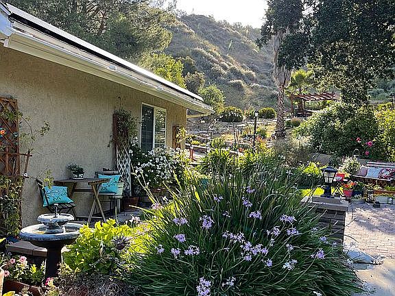 PRICED TO SELL NOW! UNBELIEVABLE and ONE OF A KIND piece of property on market for first time! Almost 2 ACRES of land in the heart of Santa Clarita Valley. Not even a mile from Northbridge Valencia! RARE opportunity to build your own resort! Private VIEW lot, end of cul-de-sac location with private driveway. REMODELED AND EXPANDED Single story now has four bedrooms and three bathrooms. Enormous master suite with custom tile in bathroom. Wood floors, new windows, stainless steel appliances in kitchen and fresh paint. Covered patio with misters, spa, oak tree and garden boxes to enjoy yard and sunsets. Custom cabinets in garage. SECLUDED yet very close to shopping and schools. Must see to appreciate.