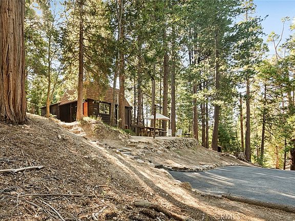 If you have been looking for that little private old cabin in the woods, a writers retreat, maybe a project house, or just a place to call home, then this is probably the one for you. Located in Upper Little Bear community at the end of the road and up on the hill surrounded by towering pines and acres of greenspace. Built in 1923 this 102 year old house is one of Lake Arrowheads original homes built back in the logging days. The 10,000 sqft lot offers whimsical walkways and paths around the property allowing you to take in the outdoors. The current owners have enjoyed multiple sitting areas, entertaining areas and even a little play area spread around the lot. The home offers all one level living with 2 bedrooms, 1 bath, living room, kitchen, dining, and a large attached deck that overlooks the forest setting. Since this lot backs up to greenspace you will find hidden trails right in your back yard that lead to other private trails offered by Will Abell Memorial trail. You are also located just behind the main Blue Jay shopping center offering convenience to shopping and dining nearly a stones throw away. Upper Little Bear offers 40 acres of surrounding greenspace and only 36 homes in this HOA. This is one you will not want to pass up, it is a must see to fully appreciate all it has to offer.