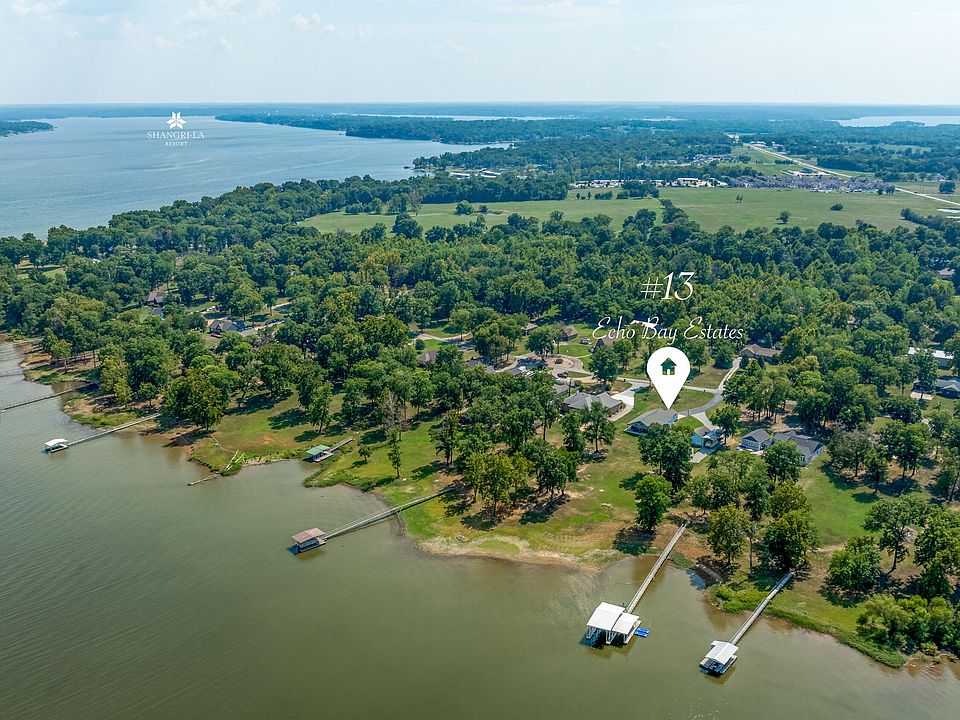 Charming lakefront home in Echo Bay Estates on Monkey Island! Perfect Lake front home with rental potential! This VRBO-friendly property offers 149 feet of shoreline with level, easy waterfront access. The spacious level yard is 1 & 1/2 lots, a boat dock w/ 2 slips, (16' x 38' & 10' x 30'), a detached man cave/bunk room, 20'x20' a 2nd detached garage, and an RV carport. This lake home features an open living design with Grand Lake views, vaulted ceilings, and expansive windows. Spacious kitchen features granite countertops, lg eating bar, and a dining area. The primary suite has lake views, patio access, and an ensuite bath. Two guest bedrooms share a full bath. Enjoy lake views on the spacious covered patios. Just a few miles to Shangri-La Golf Course, ck it out at
